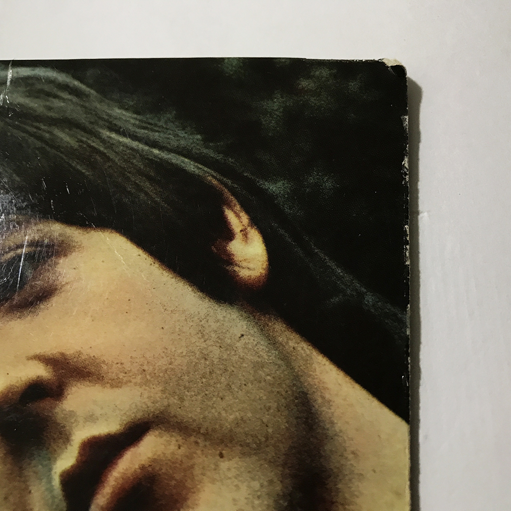 裏面:右側のフリップ部分に少々ヒビのようなしわあり。珍しく変色が少なく白さを保っています。